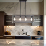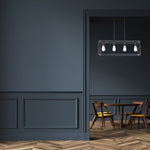 Brighten up your space with this gorgeous black metal four light caged rectangular hanging pendent light. With its black finish, this light fixture gives off a modern and updated vibe...