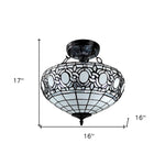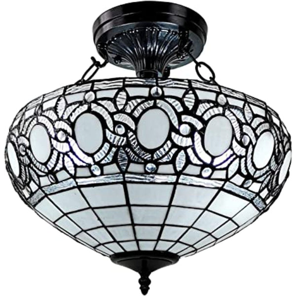Shed a new light on your space with this illuminating blue and black tiffany style two light glass dimmable semi flush ceiling light. This light will require hardwiring installation. Get...