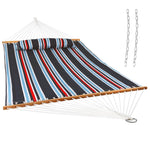 The blue red and white striped double hammock invites you to relax in style and comfort. Designed as a classic hammock, it accommodates two people, making it perfect for sharing...