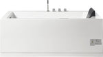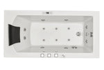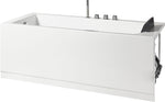 Modern and elegant, this tub transforms your bathing experience and lets you indulge in a deeper and more satisfying soak. This ETL Certified tub is filled with cool gadgets and effects like the built in stereo, lighting, and button jets. Enjoy a state of complete relaxation and tranquility and indulge in a full body spa-like experience in the comfort of your own home. Available in 5 or 6 ft lengths and Left or Right drain locations. The drain is located under the user's feet. The tub is 5 feet long. There is a larger 6 foot size also avaiable (Model # AM154ETL-L6). This tub is also available in a variant that enables the user to face the opposite direction (Model # AM154ETL-R5 and AM154ETL-R6)