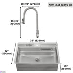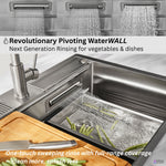 FORNO ACQUA 33 in. Drop-In/Undermount 3-Level Workstation Sink with Faucet, Waterfall & Glass Rinser