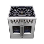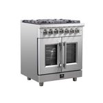 Forno Massimo 30-Inch Freestanding French Door Dual Fuel Range, 4 Burners, True Convection Oven