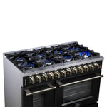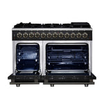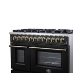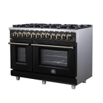 Forno Massimo 48 Inch Freestanding Dual Fuel Range in Black with Antique Brass Accessories, 8 Burners, 6.58 cu. ft. Convection Oven
