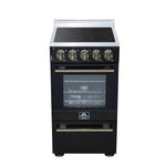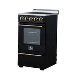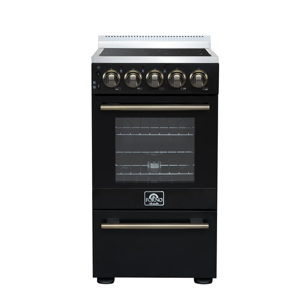 Forno Pallerano 20 Inch Freestanding Electric Range in Black with Antique Brass, Compact Design