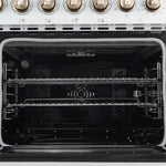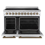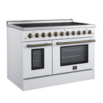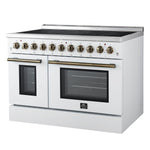 Forno Paolo 48 Inch Freestanding Electric Range in White with Antique Brass, 6.7 cu.ft, True Convection Oven, Energy Efficient