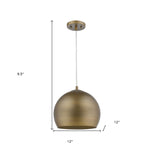 Latitude 1-Light Hand Painted Antique Gold Pendant With Gold Interior Shade