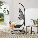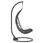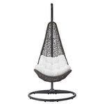 Escape to a place of quiet comfort with the Abate Outdoor Patio Swing Chair. Made with a luxurious synthetic rattan weave, and plush all-weather fabric cushion, Abate's organic design inspires simple joys as you enjoy your surroundings. This hanging chair comes with a sturdy powder-coated steel frame and hanging chain that works well to enliven your patio, backyard, porch, or poolside decor. This stand-alone swinging chair is also popular for use in indoor lounge, living, or bedroom spaces. This outdoor swing is weather and UV-resistant. Assembly required. Weight Capacity: 264 lbs.