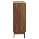 Tap into mid-century aesthetics with the Render Bar Cabinet. This installment of the Render collection features a durable particleboard frame with smooth walnut grain laminate, open shelf storage spaces, two...
