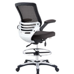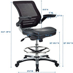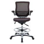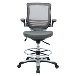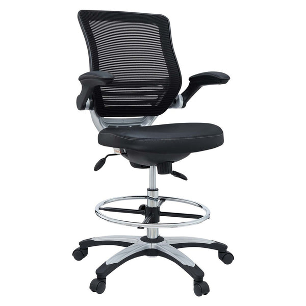 • Welcome to a new era in functional comfort. The Edge Drafting Stool implements cutting edge ergonomics to deliver a comprehensive seating experience. Edge features a breathable mesh back for lower back lumbar support, padded waterfall vinyl seat to ease pain and pressure around your thighs, flip-up padded arms, an extra tall gas cylinder with a footring, and it securely locks in place with a user-friendly seat tilt plus tension control knob. Edge is a progressively minded drafting stool perfect for school, work, or home use.