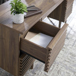 Tap into mid-century aesthetics with the Render Office Desk. This office desk features a durable particleboard frame with a smooth walnut grain laminate. A pull-out keyboard tray and four full-extension...
