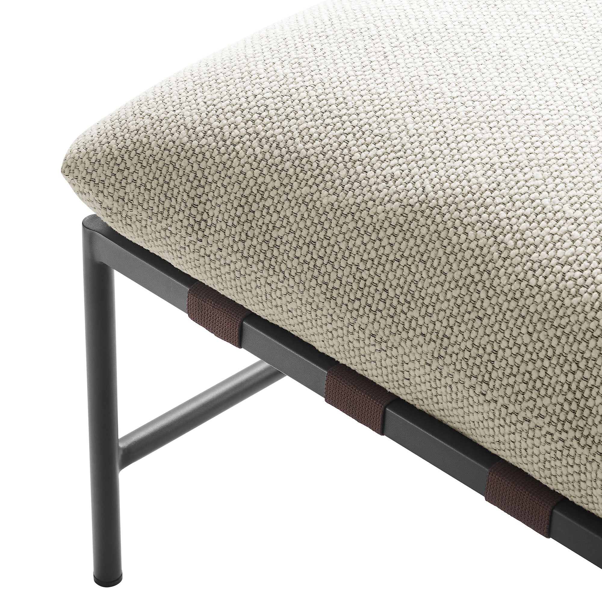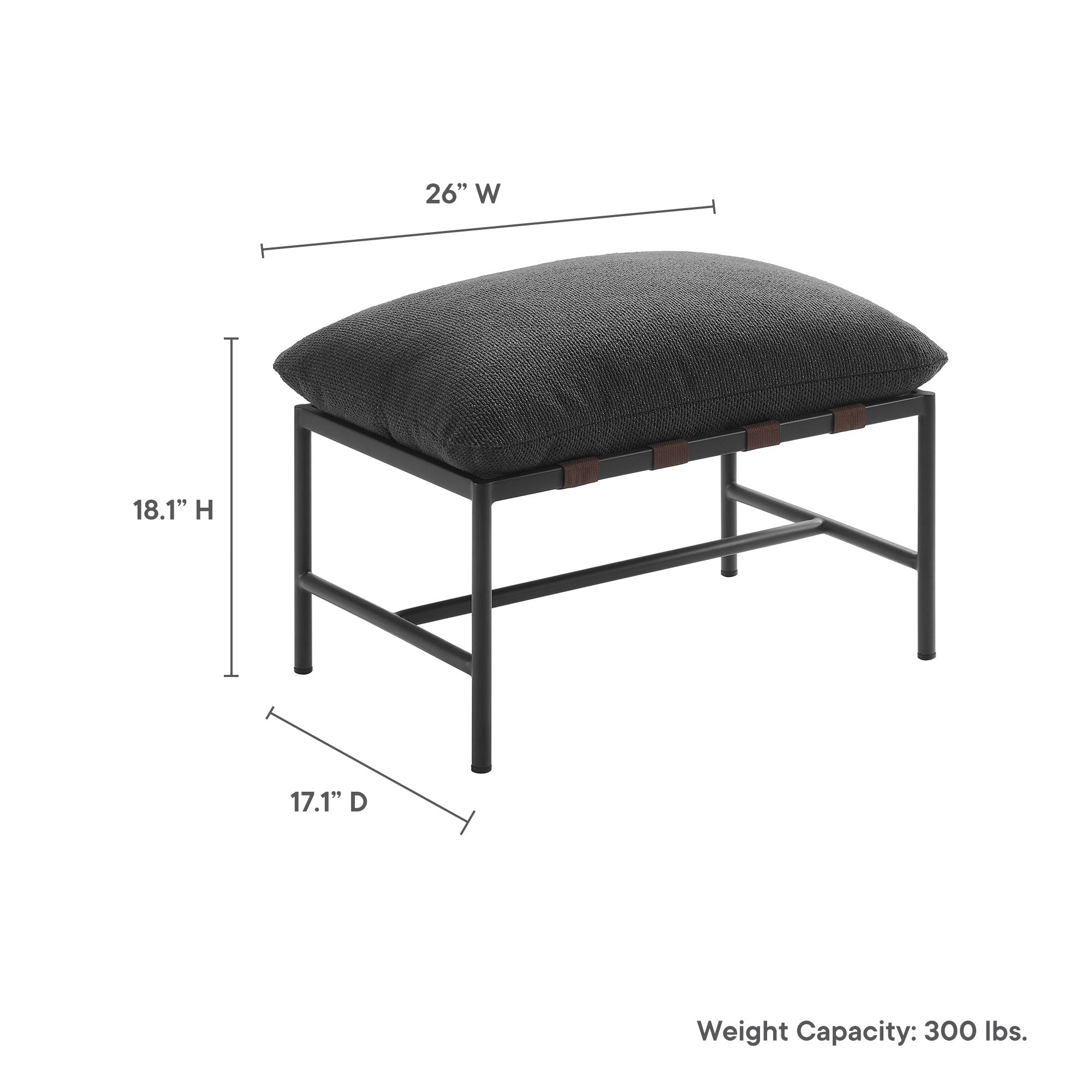 Put your feet up in style with the Raya Outdoor Ottoman, where contemporary design meets laid-back lounging. Built with a durable powder-coated aluminum frame, Raya merges reliable durability with a clean, stylish look, perfect for complementing outdoor lounge chairs. The plush, removable cushion is wrapped in all-weather nubby boucle fabric that’s both cozy and resilient, designed to withstand the elements while providing a stable, comfortable surface. Supported by sturdy poly straps, this boucle ottoman holds up to everyday use, making it a great choice for unwinding outdoors. Thoughtfully designed with non-marking foot caps to protect your floors, the Raya cushioned patio ottoman arrives fully assembled, setting the stage for relaxed lounging as soon as it’s out of the box. Ottoman Footrest Weight Capacity: 300 lbs.