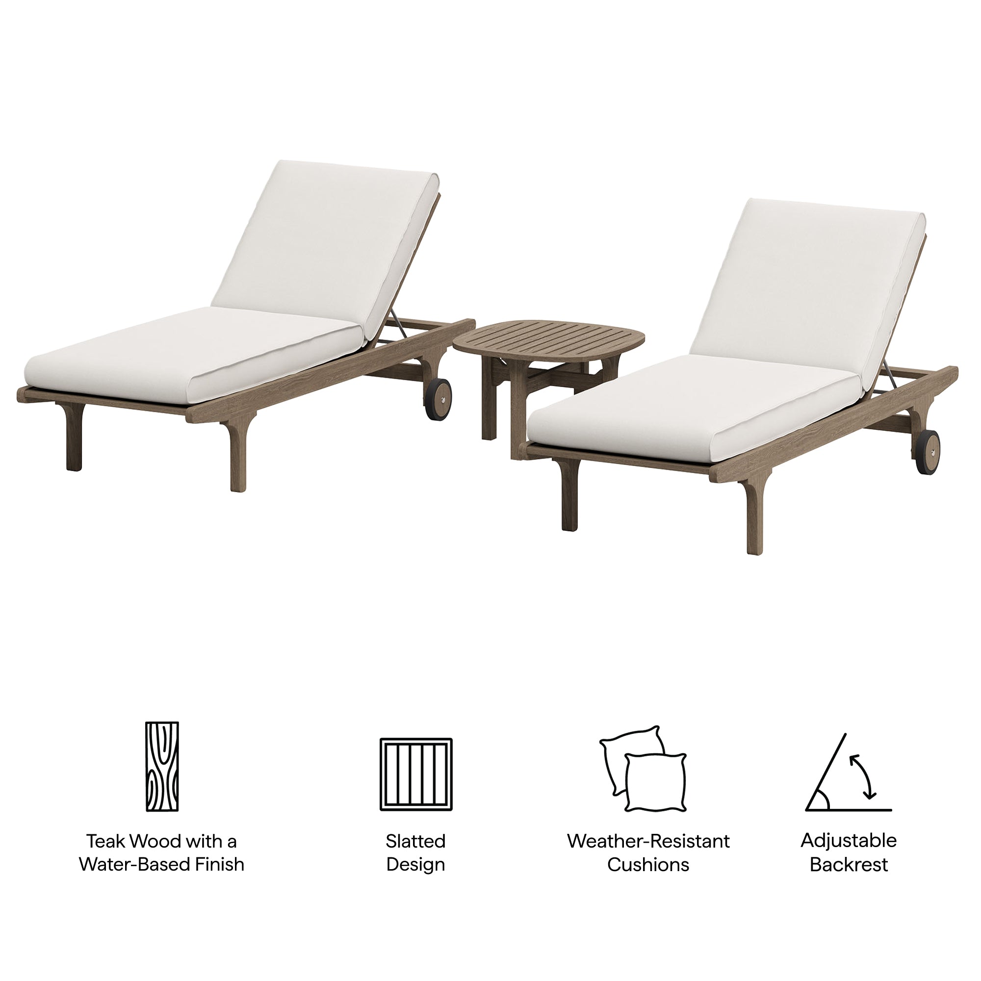 Modway EEI-7269 Saratoga Outdoor Patio Teak Wood 3-Piece Chaise Lounge Furniture Set