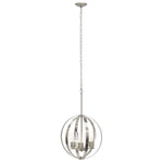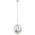 Nickel And Clear Sphere Three Light Iron Ceiling Light With Nickel Shades