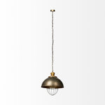 Your home will have the perfect touch of industrial design and ambient lighting with this Rustic Gold Toned Metal Dome Hanging Light. The metal shade of this hanging light has...