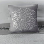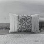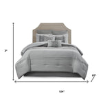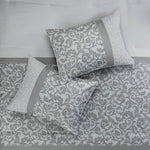 Set of Eight Gray And Ivory Damask Ring Stitch Polyester Sham And Comforter