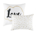 Set of Four Gold And Ivory Geometric Ring Stitch Polyester Sham And Comforter
