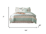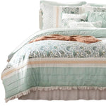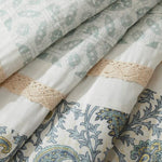 Set of Nine Aqua And Ivory Paisley King Ring Stitch Polyester Sham And Comforter