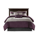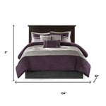 Set of Seven Purple And Gray Striped King Ring Stitch Polyester Sham And Comforter