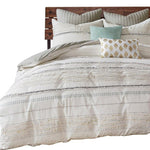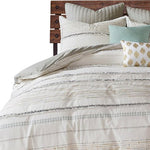 Set of Three Off White And Gray Striped King Ring Stitch Sham And Comforter