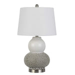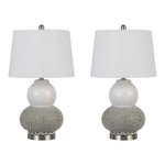 Set Of Two 24" Silver Metal Two Light Desk Table Lamps With White Globe Shade