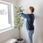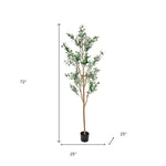 Set of two 72-inch green olive artificial trees in a black pots brings a touch of nature to your space. These floor-standing trees feature lush green leaves and black olives...