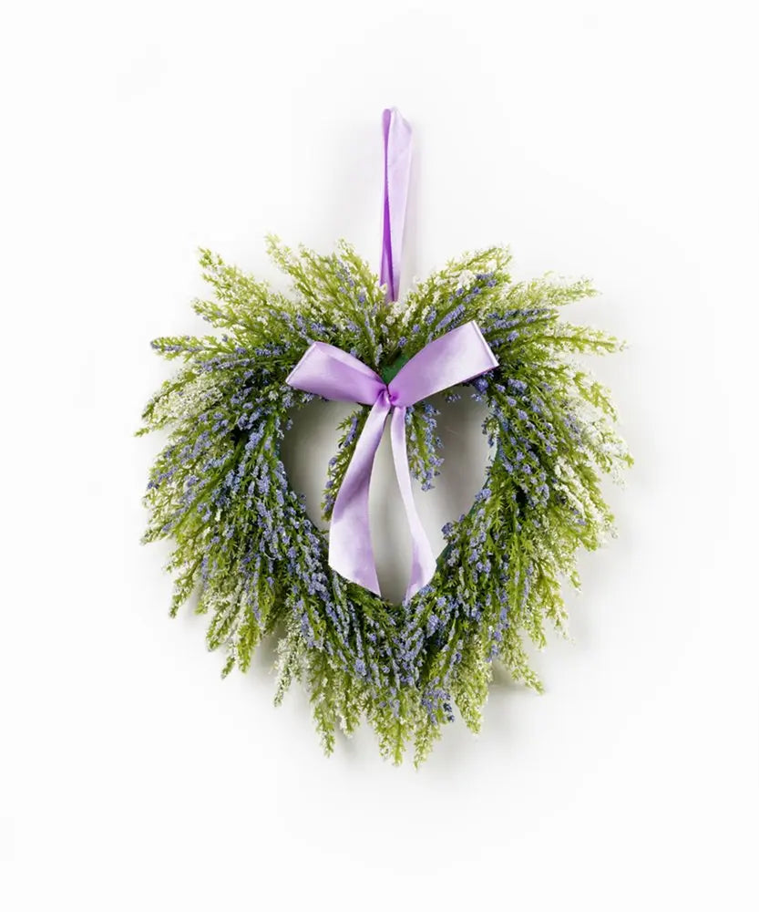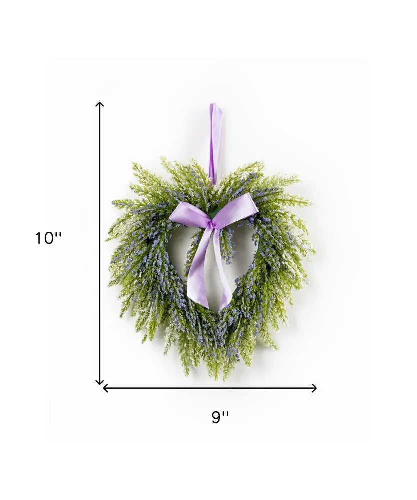 Set of Two 9" Green And Purple Heart Lavender Artificial Wreath
