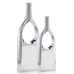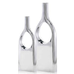 Elevate your decor with this set of two modern hole table vases. Crafted from cast aluminum in a shiny buffed silver finish, these vases exude contemporary style. The unique design...