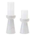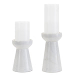 Bring the romantic glow of candlelight to your tabletop with this set of two white and gray marble tabletop pillar candle holders this holder arrives in a set of 2....