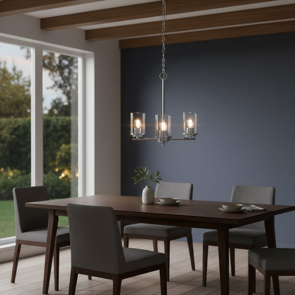 Silver And Clear Chandelier Three Light Iron Ceiling Light With Clear Shades