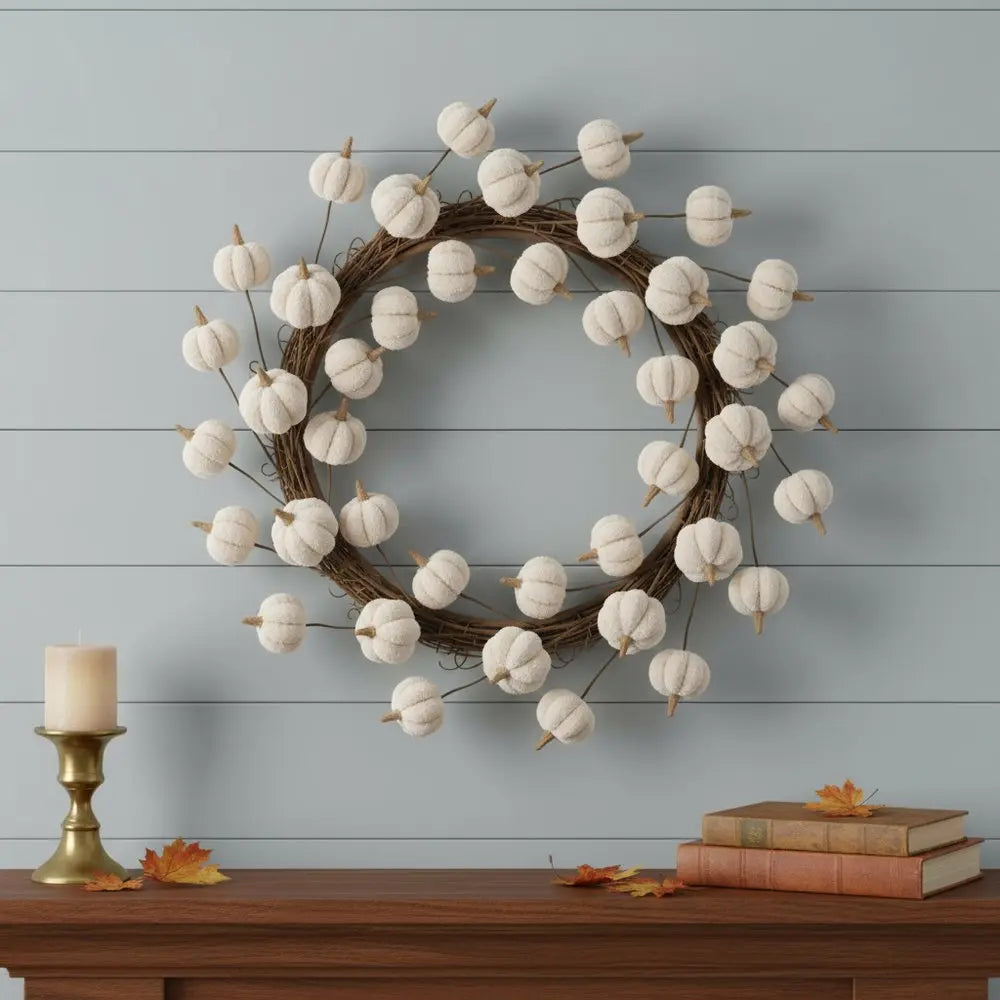 Six Cream Cream Fall Mini Pumpkins Wreath Sprays