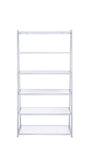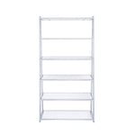This white and silver metal and glass five tier ladder bookcase is a fresh and updated way to help you keep your space neat and organized. 5 shelf tiers are...