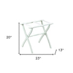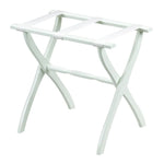 The white folding luggage rack with white straps is an essential addition to any bedroom or guest area. Hand-crafted from solid wood with a curved leg design and three white...
