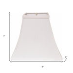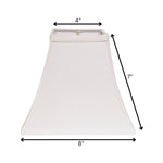 The white no slub innsbruck square lamp shade adds a touch of elegance to any space. This traditional lamp shade features a stylish square shape that complements various decor styles. Designed with a convenient clip-on attachment, it easily fits onto your lamp. Measuring 4 inches in width and depth at the top, it provides a well-proportioned accent. The slant height of 7 inches enhances its visual appeal while allowing optimal light diffusion. Its pristine white color brings a fresh and clean look to your room, making it a versatile choice for any setting. This lamp shade is perfect for those looking to elevate their lighting fixtures with sophistication and charm. 7.00-inch h x 8.00-inch w x 8.00-inch d.