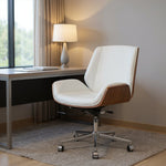 Upgrade your workspace with this white silver and walnut adjustable height swivel rolling conference office chair. The high quality solid wood and stainless steel frame and construction and add durability,...